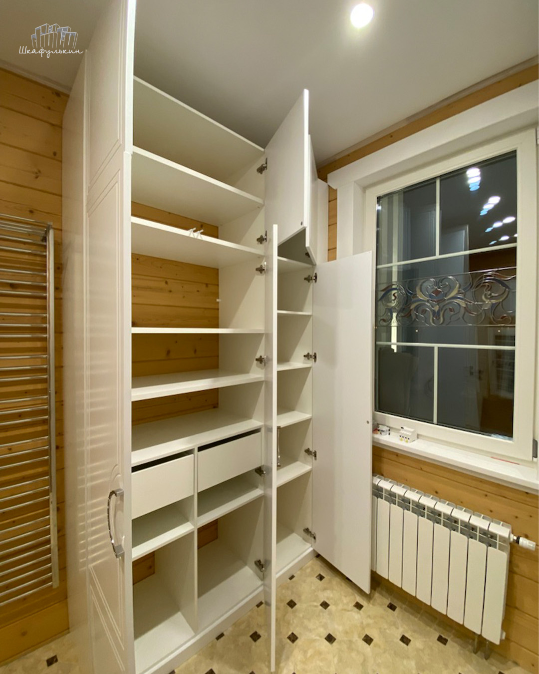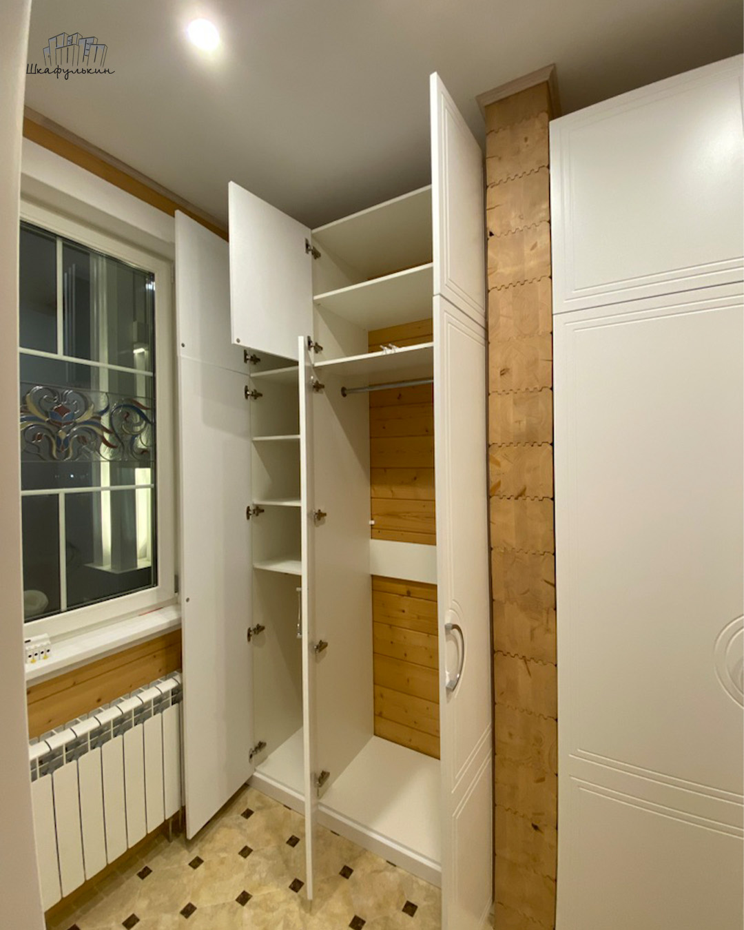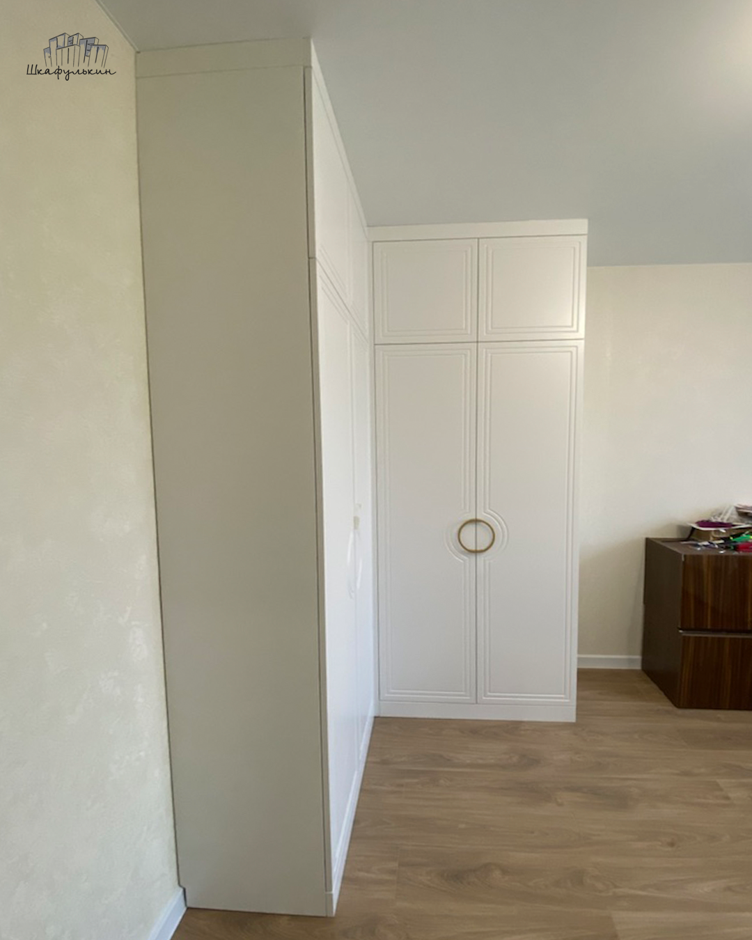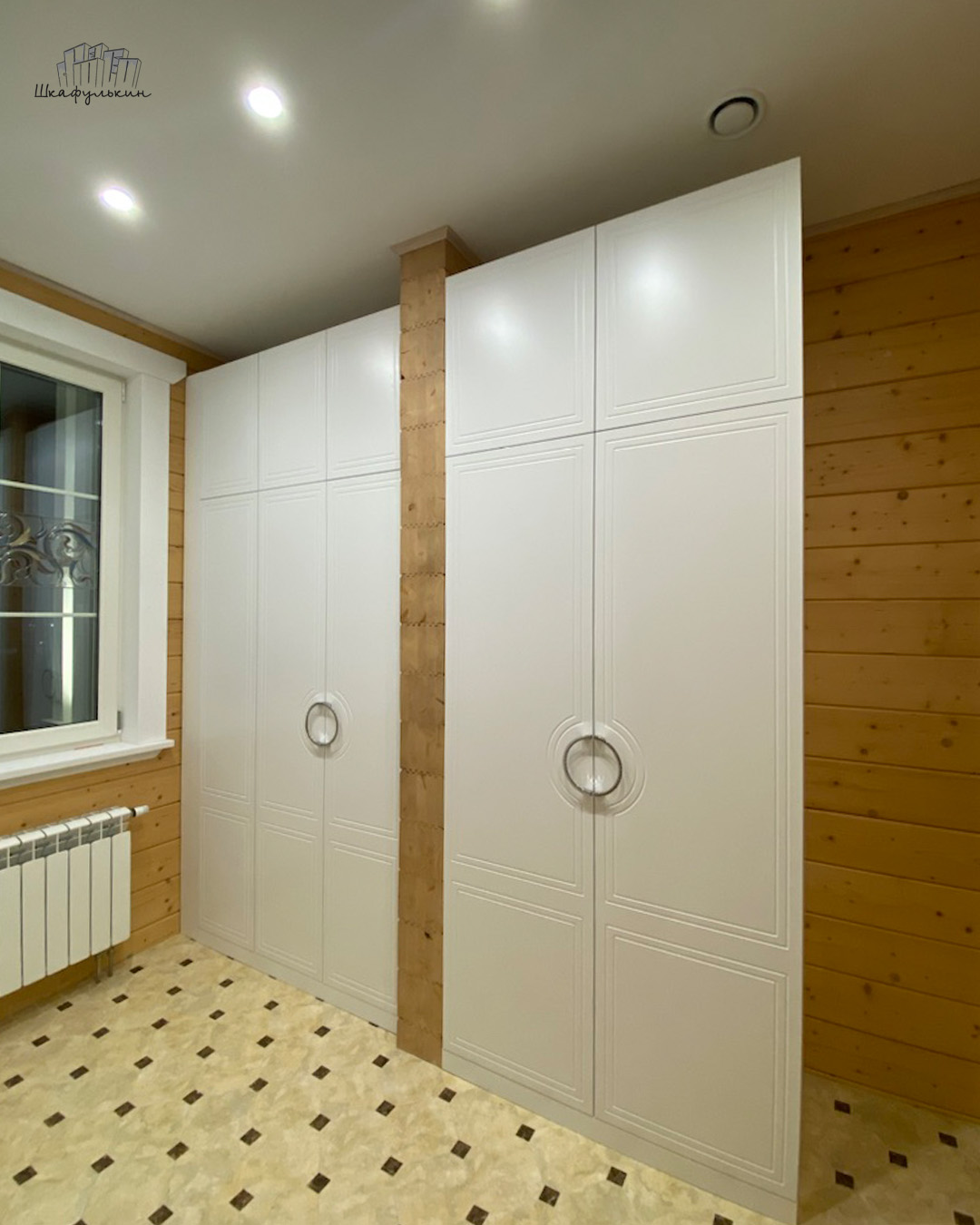 Размер шкафов на фото (Ш/В/Г): 3000х2550х580 мм и 1000х2550х580 мм.