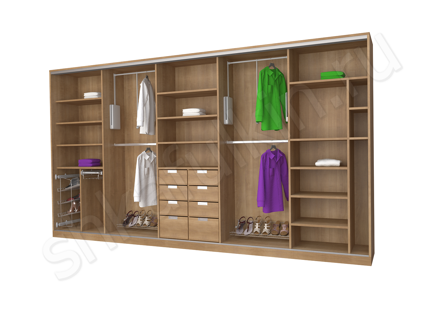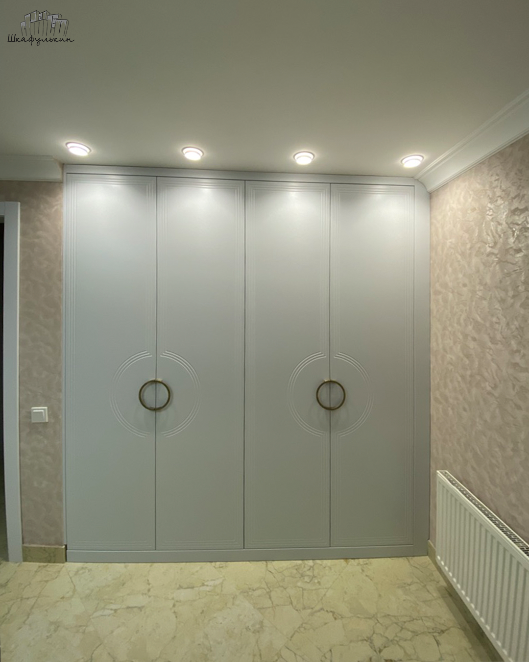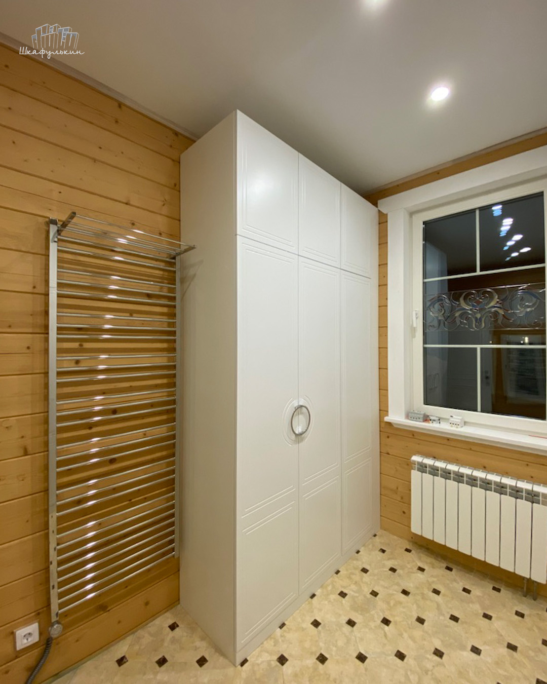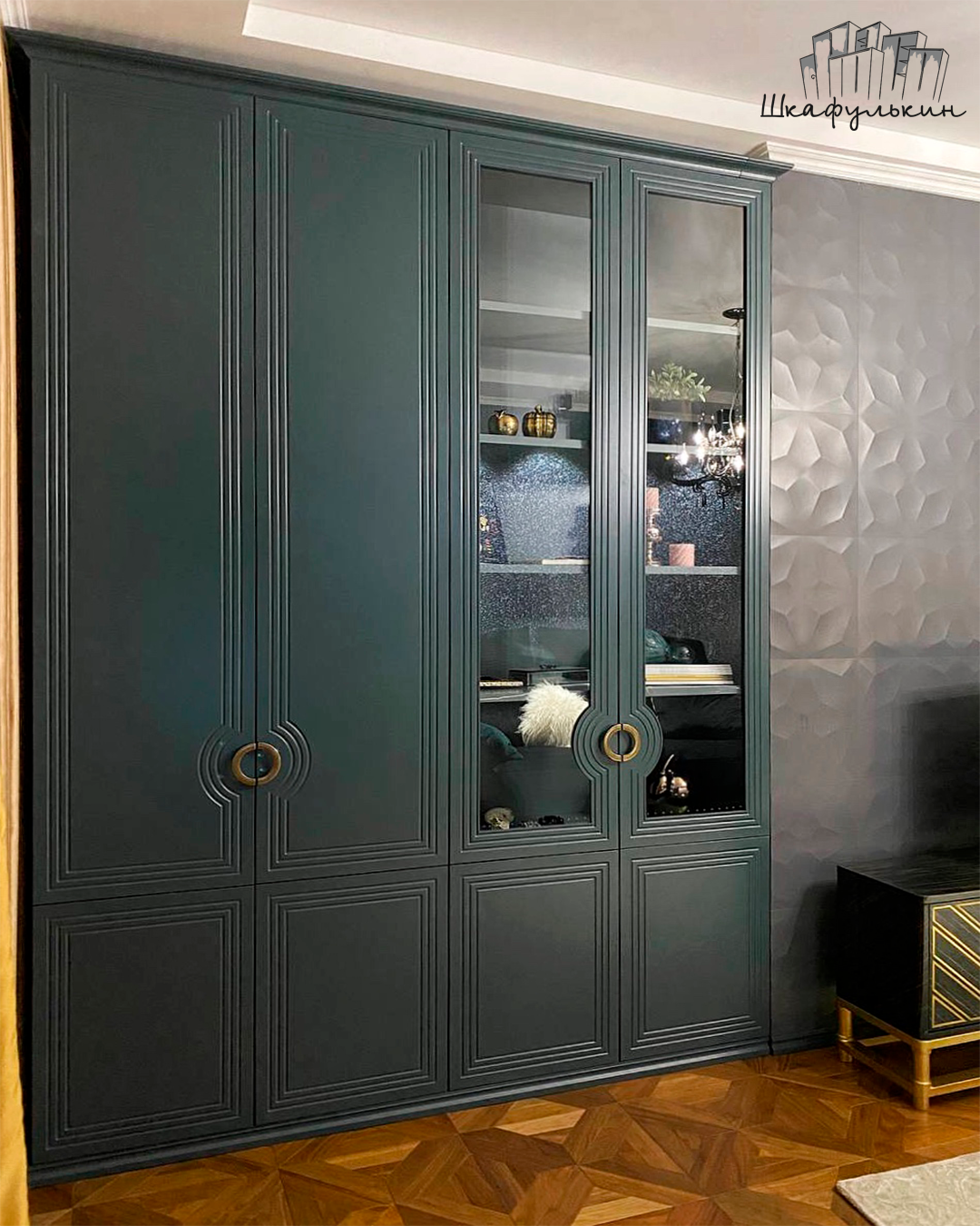 Размер шкафов на фото (Ш/В/Г): 3000х2550х580 мм и 1000х2550х580 мм.